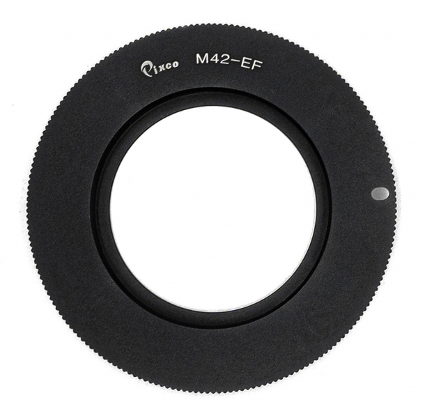 предназначен для установки объективов с резьбой М42х1 (Гелиос, Юпитер, Мир, Индустар, Зенитар) на фотоаппараты системы Canon EOS. Данный переходник удобен при использовании объективов с ручным управлением. Камера подтверждает точность наводки на резкость (подает звуковой сигнал, высвечивается световая информация на дисплее) при полунажатии на спусковую кнопку и попадании объекта в фокус.