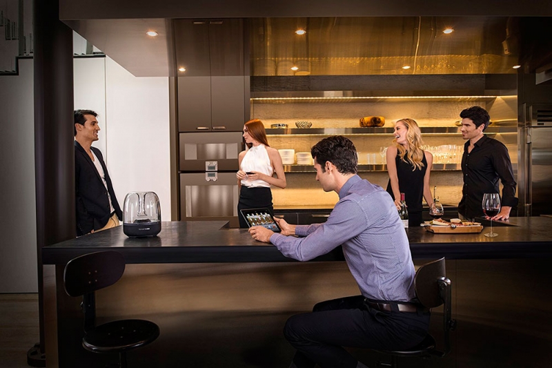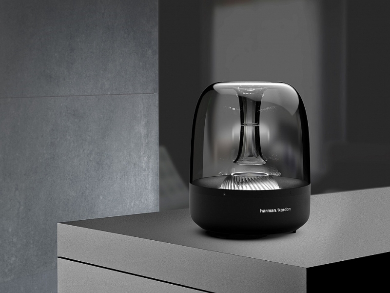 Harman Kardon Aura Studio 2 самая необычная акустика от данного производителя в плане внешнего вида. Конструкция модели гарантирует удобное управление и качественный всесторонний звук. Нижняя часть акустики имеет яркую LED-подсветку белого цвета. Акустика использует беспроводное подключение Bluetooth для проигрывания музыки с портативных устройств, а также модель имеет поддержку AirPlay. В устройстве имеется 6 динамиков, диаметром 40 мм каждый и мощный сабвуфер диаметром 112 мм, благодаря чему музыка проигрывается без каких-либо помех на всем частотном диапазоне. В модели также установлены усилители, суммарная мощность которых составляет 60 Вт.