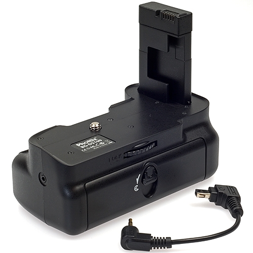 Батарейный блок Phottix BG-D5200 для фотоаппаратов Nikon D5100 D5200 D5300 повышает скорость съёмки и увеличивает время автономной работы. Эргономичная конструкция рукоятки батарейного блока позволяет более удобно держать фотокамеру при съёмке в вертикальном положении. В качестве источника питания блока используются одна или две специальные аккумуляторные батареи EN-EL14. Для удобства съёмки вертикальных кадров на рукоятке расположены дополнительная спусковая кнопка затвора. Короткий кабель соединяет данный батарейный блок с портом для удалённого спуска затвора Nikon D5200 для обеспечения функции спуска.