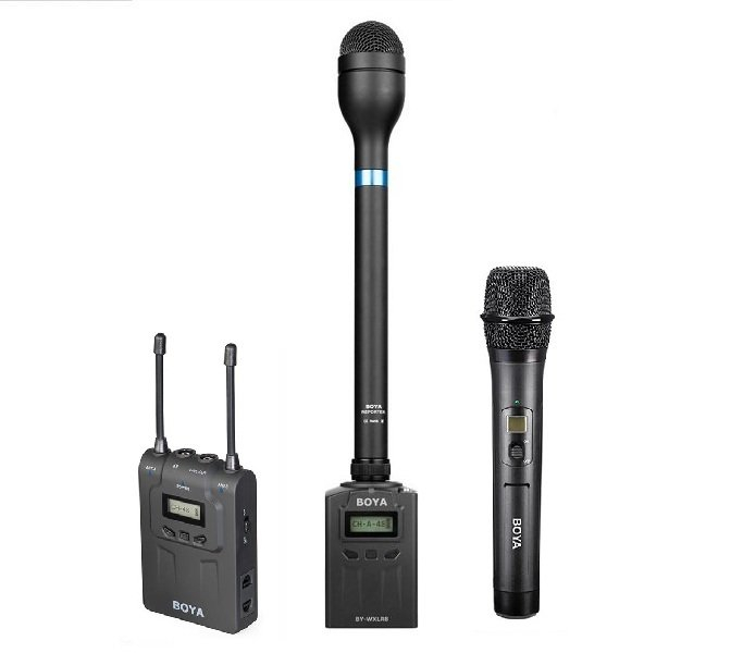 • Беспроводная двухканальная радиосистема Boya BY-WM8-K10 (кит BY-WM8R + BY-WXLR8 + BY-HM100 + BY-WHM8)