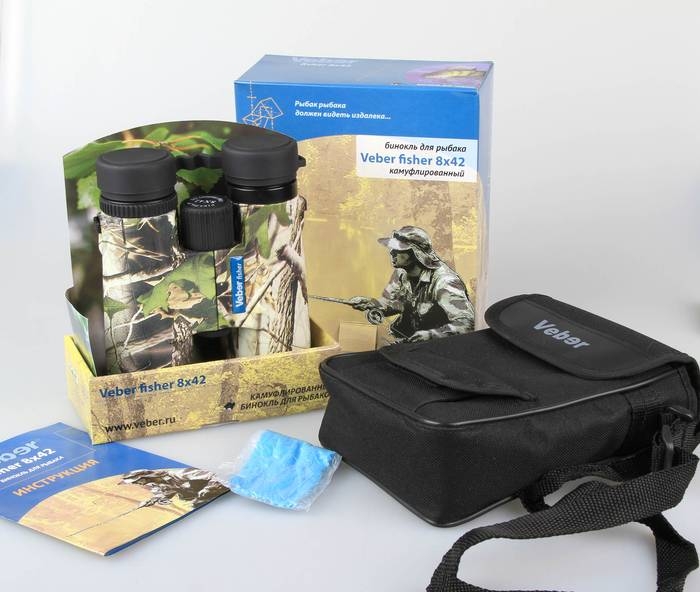 У бинокля Veber Fisher 8x42 классическое увеличение - 8 крат. При этом широкое поле зрения позволяет не только легко обнаружить знакомые ориентиры в воде или на берегу, но также и удерживать объекты наблюдений в поле зрения при движении на катере.