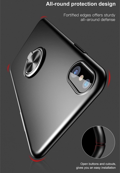 Чехол Baseus Ring Case для iPhone X Чехол-накладка Baseus Ring Case для новинки от компании Apple - iPhone X имеет невероятную защиту и продуманную функциональность. Аксессуар с ультратонким профилем не увеличивает гаджет в габаритах, но при этом гарантирует полную защиту со всех сторон. Роскошный дизайн и встроенное магнитное кольцо придадут девайсу необычный стиль и удобство при просмотре фильмов, фотографий, а также при транспортировке. Корпус чехла выполнен из двухкомпонентного материала: высококачественного жесткого пластика и термопластичного полиуретана (TPU). Благодаря такой выгодной комбинации, чехол держит свою форму длительное время и устойчив к механическим повреждениям, а также обеспечивает прекрасные амортизирующие свойства при ударах и падениях. Резиновая отделка по всему периметру обеспечивает прекрасное сцепление как в руках, так и и с поверхностью. За счет выступающих краев дисплей находится в безопасности от царапин и потертостей. С тыльной Baseus Ring Case имеется металлическое кольцо, которое вы можете использовать для переноски телефона или в качестве подставки при просмотре фильмов или при чтении. Оно вращается на 360 градусов вокруг своей оси, а также складывается в любую сторону на 180 градусов. Встроенное кольцо может использоваться для крепления смартфона к приборной панели при помощи магнитного автодержателя.