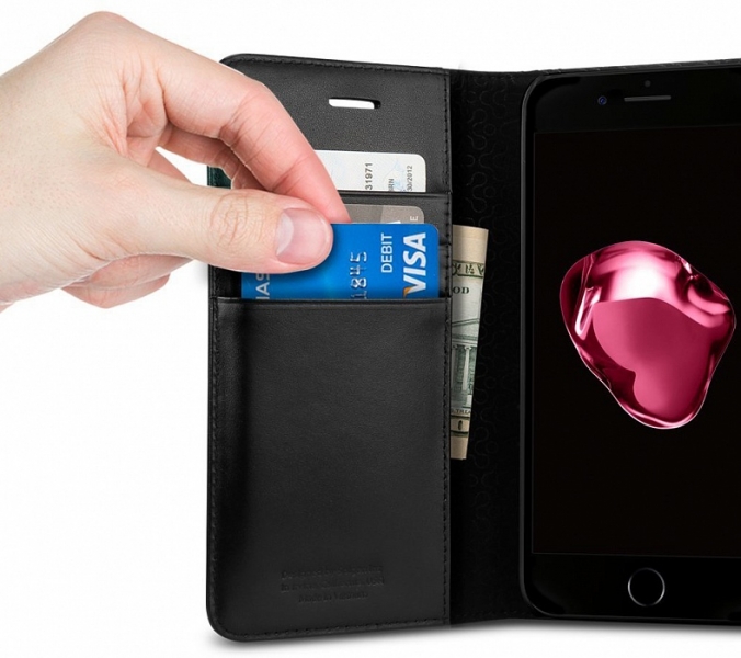 Spigen Valentinus представляет собой выполненный в виде портмоне чехол для iPhone 7 Plus. Он не только обеспечит высокий уровень защиты вашего мобильного устройства, но придаст ему роскошный внешний вид, подчеркнув ваш стиль. Также он расширит функциональность коммуникатора, позволит всегда иметь при себе пластиковые карты, наличность, визитки. Внутренняя часть чехла Spigen Valentinus отделана микрофиброй, при этом внутри он имеет прочный каркас из поликарбоната, что, в свою очередь, обеспечивает надежную защиту находящегося в нем iPhone 7 Plus. Аксессуар выполнен полностью вручную из натуральной кожи премиум-класса.