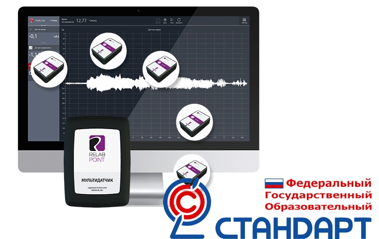 Цифровая лаборатория Relab Point для начальной школы (комплект "Исследовательский") состоит из таких мультидатчиков (и немного обычных датчиков есть в комплекте):