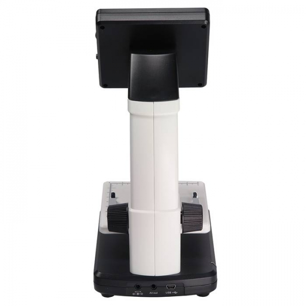 Цифровой стационарный микроскоп с 5 МП CMOS камерой, увеличением 10 — 300 крат (цифровое увеличение до 500 крат), светодиодной подсветкой, регулируемым по высоте предметным столом и цветным ЖК-дисплеем3,5″.