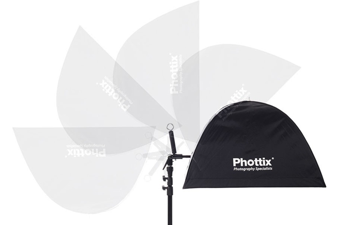 - Позволяет установить одну или несколько вспышек направленных в центр зонта, либо зонта-софтбокса Phottix Easy-Up, а также подобных софтбоксов других производителей для более равномерного распределения света.