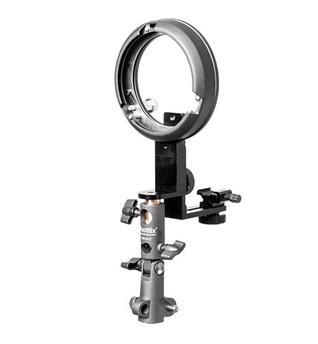 Держатель с креплением Phottix HS Speed II предназначен для крепления накамерной вспышки на стойку. С помощью детали типа L, стандартного башмака, винта крепления ¼х20 и ремешка осуществляется возможность крепления вспышек различных размеров либо в вертикальном либо в горизонтальном положении. Одновременно при помощи крепительных колец Bowens могут устанавливаться различные отражатели и рассеиватели света.