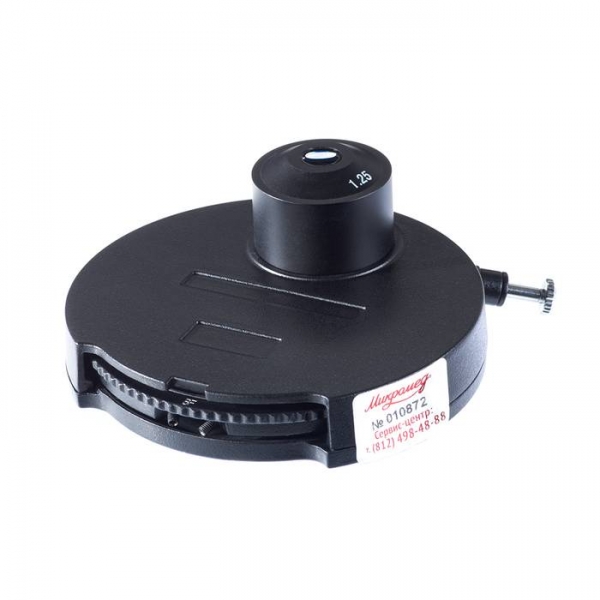 Фазовый конденсор вставляется в кольцо кронштейна конденсора микроскопа вместо обычного светлопольного конденсора и зажимается винтом обычным способом.