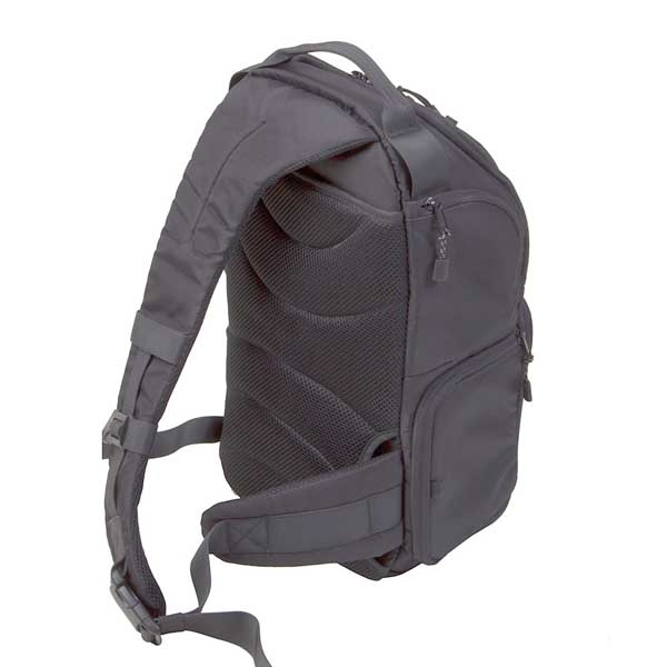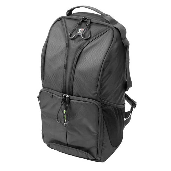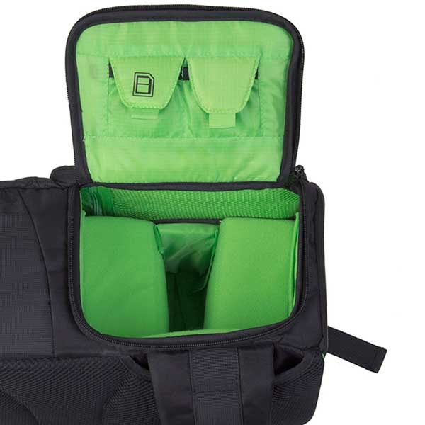 Вместительный рюкзак слинг предназначен для транспортировки и хранения зеркальной камеры, 2–3 объективов, вспышки и аксессуаров. Изготовлен из устойчивого к климатическим воздействиям нейлона с защитным вспененным наполнителем, внутренние стенки из мягкого вельвета яркого зеленого цвета, на фоне которого не затеряются даже самые мелкие предметы. Конструкция слинга и двухзамковые молнии позволяют получить быстрый доступ к фото или видео камере, дополнительному оборудованию. Можно легко перекинуть рюкзак из-за спины на живот и откинув от себя боковую крышку, безопасно и удобно открывать нижний отсек рюкзака, а также использовать это положение как упор под локоть при съемке. Широкая лямка распределяет нагрузку на плече и обеспечивает комфортную эксплуатацию. При необходимости лямки можно спрятать в специально предусмотренный карман и использовать рюкзак как сумку (сверху и сбоку имеются ручки для переноски). Металлические язычки молний снабжены удобными нейлоновыми петлями. «Дышащая» спинка Air Comfort изготовлена из мягкого вспененного материала и 3D сетки для улучшенной вентиляции воздуха. В нижней части рюкзака располагается специальный карман для упора и фиксации на месте штативной ноги, сверху (на крышке рюкзака) штатив удерживается лямкой. Также снизу имеется потайной карман с чехлом, защищающим технику от дождя, пыли и песка. Основной отсек для техники имеет перегородки на липучках, благодаря этому пространство внутри рюкзака можно настроить под необходимое оборудование. Два кармана под карты памяти и другие мелкие аксессуары располагаются на боковой крышке. Для личных вещей и дополнительного оборудования в рюкзаке предусмотрен большой верхний отсек с двумя карманами-сетками.