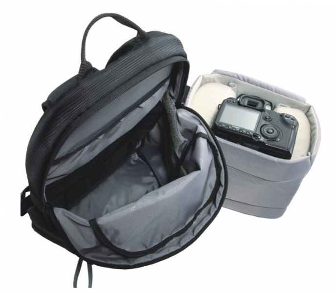 VANGUARD Kinray Lite 48 - рюкзак для фототехники. Доступ к оборудованию предоставляется как сбоку, так и через верхнее отделение, что позволяет переносить длинные телеобъективы и/или зрительные трубы и т.п. оборудование. Достаточно вместительное верхнее отделение для личных вещей и аксессуаров, боковой сетчатый карман для бутылки воды, держатель для монопода / штатива, разгрузочная система с поясным и нагрудным ремнями, мягкая рельефная спинка с вентиляцией и водонепроницаемый чехол в комплекте.