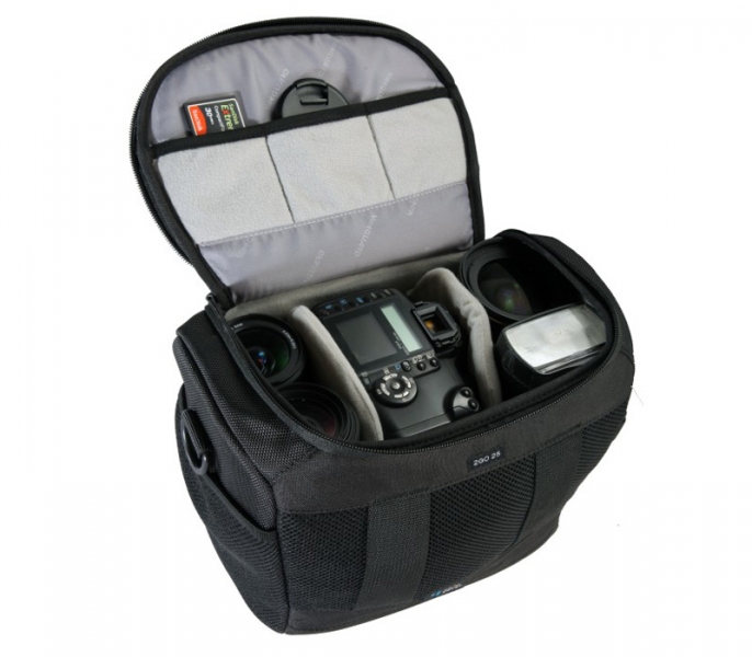 Vanguard2GO 25 - стильная фотосумка на каждый день, с возможностью быстрого доступа к оборудованию. Ножки расположенные на дне сумки, не только обеспечивают дополнительную защиту, но и отлично дополняют дизайн. Два замка на застежке-молнии позволяют быстро вытаскивать камеру и аксессуары. Подготовка к съемке занимает всего несколько секунд. Кроме этого сумка имеет крепления для поясного ремня, бутылки с водой и небольшой карман для аксессуаров.