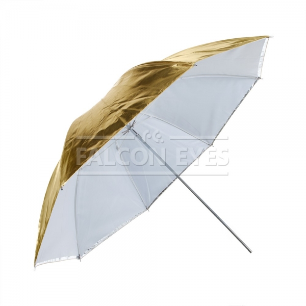 Зонт-отражатель URK-60TGS универсальный, предназначен для рассеивания света от источников освещения. В комплекте двусторонний отражатель золото/серебро и полупрозрачный рассеиватель. Данная модель позволяет комбинировать поверхности для получения 5 модификаций: просвечивающий / золотистый / серебристый / просвечивающий+золотистый / просвечивающий+серебристый. Диаметр 122 см. Просветный зонт покрыт белой полупрозрачной тканью. Световой поток от вспышки попадает на ткань зонта, максимально рассеивается и, увеличивая площадь излучения, равномерно освещает объект съемки. Таким образом, резкий точечный свет, излучаемый при срабатывании фотовспышки, преобразуется в достаточно мягкий световой поток, излучаемый с большей площади. Серебристая поверхность зонта дает более жесткий, по сравнению с белыми зонтами, свет, что позволяет получать контрастное изображение с четкими тенями. Золотистая поверхность придает отраженному свету теплые золотистые тона, часто используется в портретной съемке в качестве моделирующего или контрового источника (например, для того чтобы подчеркнуть теплым светом очертания фигуры). Возможно использовать сочетания поверхностей (просвечивающей и отражающих серебристой/золотистой) для усреднения формируемого эффекта - получения более контролируемого и направленного света (чем при использовании просвечивающей поверхности), и менее контрастного мягкого (чем при использовании серебристой/золотистой поверхности) Прочные эластичные спицы из стекловолокна и соединительные элементы из ударопрочного пластика для долговечного использования - спицы не ржавеют, сохраняют форму на протяжении всего срока эксплуатации, устойчивы к механическим воздействиям. Ткань из полиэстера обладает высокой износостойкостью.