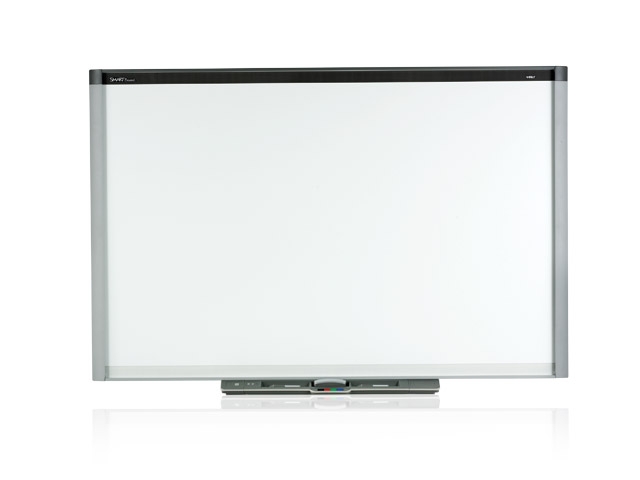 SMART Board x885 — это еще один представитель новой линейки интерактивных досок. У всех досок из этой серии есть четыре DViT-камеры, которые позволяют двум пользователям работать на разных участках поверхности одновременно. Отметим, что эта доска имеет технологию Multi Touch, популярную, в наше время, у производителей мобильных устройств. Основа поверхности доски состоит из стальных элементов, поэтому использование жесткого ластика для стирания абсолютно безопасно. Чтобы установить дополнительные модули расширения на SMART Board x885, предусмотрен специальный лоток со съемными крышками.