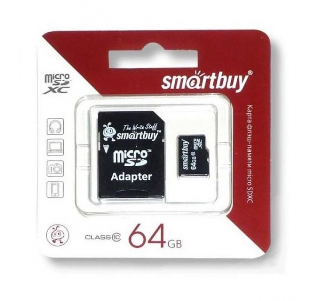 Карта памяти с адаптером 64Гб Class 10: скорость передачи данных 10 МБ/с Доступная емкость: 64 ГБ Комплектация: карта, адаптер |