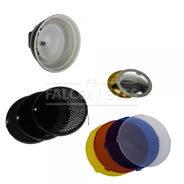 Falcon Eyes FGA-K9 — универсальный набор светоформирующих насадок. Комплект позволит фотографу, куда бы он ни поехал, иметь при себе весь необходимый студийный набор и дополнить вспышку оборудованием для создания всевозможных световых эффектов. Посадочный размер 68×48 мм, все насадки с гибким пластиковым четырехлепестковым хвостовиком, комплектуются стяжками для закрепления на вспышке.