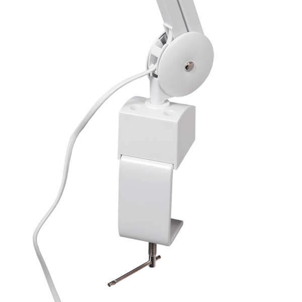 Лупа-лампа Veber 8608D LED Bi-color со сменными линзами Лупа-лампа Veber 8608D LED Bi-color со сменными линзами на струбцине с регулировкой яркости и цветовой температуры, позволяет удобно работать с микро и мини электронными компонентами или печатными платами с плотным монтажом. Для использования лампы-лупы косметологами, важную роль играют возможность получения бестеневого освещения и возможность настройки цветовой температуры, так как цветовая температура — один из самых важных параметров осветителя. Она имеет влияние не только на восприятие света человеческим глазом, но и на цветопередачу окружающих предметов. Лампа найдёт применение в ювелирных мастерских, в химических лабораториях, полиграфии, филателии, ювелирном деле, а также при работе с документами. Кроме того, поможет в бытовых целях — для чтения, рисования, шитья, вышивания, моделирования — везде, где требуется хорошее освещение поля зрения и возможность выбора необходимого увеличения. Источник света В качестве источника света в лампе используется кольцевая светодиодная панель со 120 SMD яркими светодиодами суммарной мощностью 12 Вт. Светодиоды закрыты матовым «молочным» светорассеивателем. Управление яркостью и цветовой температурой осуществляется одной кнопкой, находящейся на корпусе лампы-лупы. Однократное короткое нажатие — включение подсветки, последующие короткие нажатия — циклическое переключение цветовой температуры (3000К «тёплый свет», 4500К «белый свет» и 6000К «холодный свет»). Длительное нажатие кнопки при выбранной цветовой температуре циклически плавно меняет яркость свечения светодиодов (от 30% до 100% яркости). Питание осветителя осуществляется от блока питания, включается в бытовую сеть переменного тока. Сменные линзы Конструкция лупы-лампы Veber 8608D LED Bi-color предусматривает возможность смены кратности увеличения изображения за счёт использования сменных обойм с линзами. Всего в комплекте две таких обоймы: обойма с большой 3-х кратной (Ø 144 мм) и наклеенной сверху на неё 20-кратной линзой (Ø 23 мм) и обойма с четырьмя линзами (Ø 47 мм каждая) кратностью 8х, 10х, 12х и 15х. Оперативно сменить обойму с линзами не составляет труда — её крепление в кольце имеет байонетный тип. Все линзы лупы-лампы изготовлены из оптического стекла. Благодаря этому, создаваемое изображение абсолютно лишено окраски и искажения по краям поля зрения. Материал обойм — прочный противоударный ABS пластик. Кронштейн и крепление Отличительной особенностью конструкции лупы-лампы Veber 8608D LED Bi-color является использование пантографа с поворотно-наклонным узлом крепления осветителя с линзами. Наиболее часто осветитель с линзами ориентируют параллельно плоскости стола, при этом пантограф позволяет изменять высоту осветителя точно сохраняя эту параллельность. Наличие поворотно-наклонного узла крепления позволяет настроить и зафиксировать положение лупы в любой удобной для наблюдателя плоскости. Это удобно, например, при работе с протяжёнными объектами установленными на столе — реставрации керамических изделий, картин и т. д. При этом, пантограф позволяет сохранять параллельность осветителя с линзами при «сканировании» поверхности этих объектов. Пантограф изготовлен из стального квадратного профиля с полимерным защитным покрытием. Внутри профиля скрыты пружины механизма удержания осветителя на выб