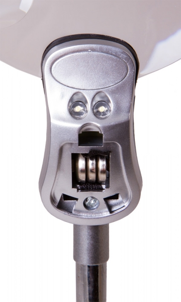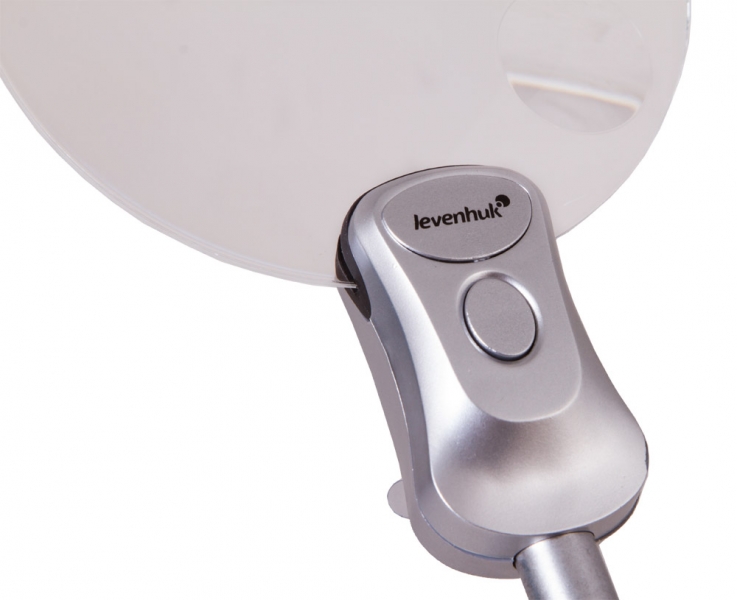Лупа настольная Levenhuk Zeno Desk D5 В настольной лупе Levenhuk Zeno Desk D5 нет ничего лишнего. Это бифокальная линза на гибком штативе, установленная на устойчивое круглое основание. Лупа дает два увеличения, 2 и 6 крат, и отлично подходит для изучения мелких предметов, рукоделия, чтения, занятий творчеством и ремонта небольших изделий. Для работы в слабо освещенных помещениях удобно использовать встроенную подсветку – под линзой расположены две светодиодные лампочки. Они дают ровный и яркий свет и хорошо освещают рабочее пространство. Гибкий штатив позволяет выбирать наиболее удобное положение линзы во время работы.