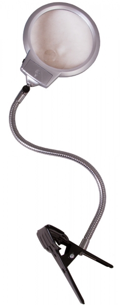 Лупа настольная Levenhuk Zeno Desk D9 Настольная лупа Levenhuk Zeno Desk D9 – удобный оптический прибор для изучения мелких предметов. Бифокальная линза большого диаметра предназначена для работы на разной кратности, а гибкий штатив помогает точно расположить лупу над нужной областью. Линза сделана из прочного оптического пластика. С помощью держателя-прищепки лупу удобно фиксировать на столе, полке или даже дверце шкафа. Встроенная подсветка поможет проводить наблюдения в слабо освещенных помещениях. Она состоит из 2 светодиодов, которые установлены в оправе линзы. Для включения подсветки используется переключатель на корпусе.
