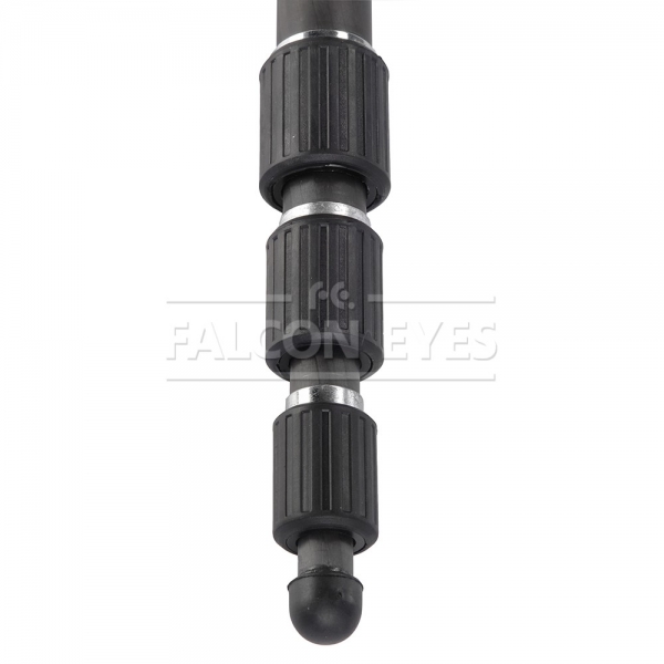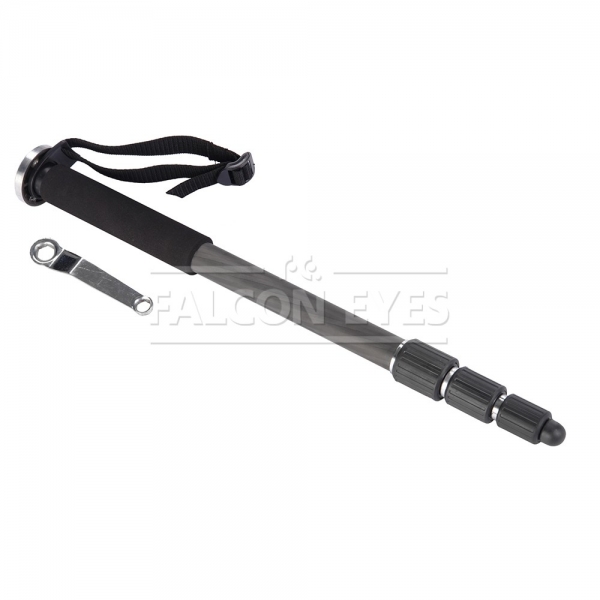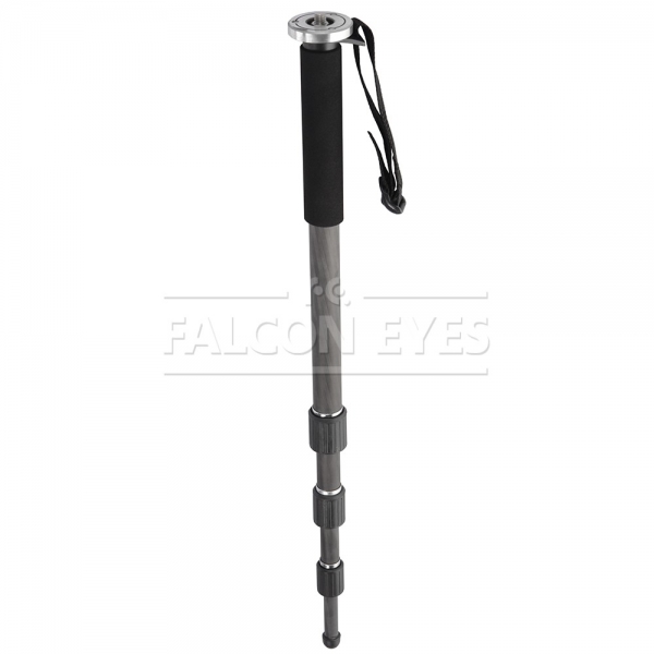 Falcon Eyes Возможна установка штативной головы с установочной резьбой 3/8" или 1/4", диаметр площадки под штативную головку — 50 мм. Рекомендуется устанавливать на монопод штативные шаровые головы серии BH. Четыре секции монопода обеспечивают широкий диапазон регулировки рабочей высоты. Большой диаметр секций (диаметр верхней секции 25 мм) и надежные цанговые зажимы успешно гасят передающиеся по корпусу вибрации и сохраняют прочность конструкции. Металлические зажимы с фторпластовыми прокладками обеспечивают долговечность работы и прочную фиксацию секций. Максимальная высота в рабочем состоянии 145 см. Достаточно компактный в сложенном виде — 48,5 см. Монопод изготовлен из карбона и весит всего 0,35 кг. Карбоновый монопод обладает рядом уникальных свойств — он прочнее и долговечнее алюминиевых аналогов и при этом обладает меньшей массой. Резиновая опора обеспечивает устойчивость монопода и не царапает поверхность на которой он установлен. Рукоятка из вспененного материала служит для комфортной работы при отрицательных температурах и прочного удерживания без проскальзывания. Монопод снабжен ремешком для фиксации на руке, это предупредит падение монопода с камерой, если фотограф случайно выпустит его из рук.