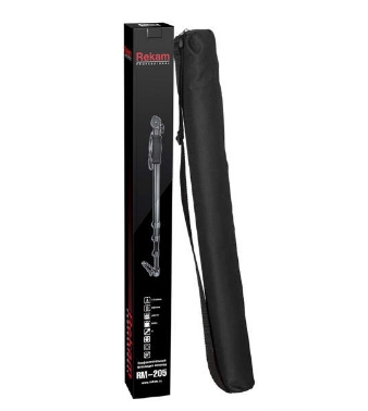 Монопод Rekam RM-205 Данное устройство, как и штативы, применяется для стабилизации фотокамеры при фотосъёмке. Основная особенность, отличающая монопод от штатива – наличие одной опорной «ноги». Монопод не избавляет фотоаппарат от «шевелёнки» полностью, тем не менее, позволяет поставить выдержку на один-два стопа большую, нежели при съёмке с рук. Главное преимущество монопода – мобильность; фотограф со штативом фактически привязан к одной точке (сворачивание-установка штатива занимает около минуты), в то время как с моноподом он может двигаться, отыскивая подходящие ракурсы. Все модели моноподов имеют удобные и жесткие фиксаторы для изменения высоты «ноги», а также лёгкую и прочную сумку-чехол, для переноса и защиты от механических повреждений. Очень удобно использовать монопод для репортажной съёмки. В этом случае он просто незаменим, так как при большом скоплении людей, просто нет возможности установить штатив. Характеристики