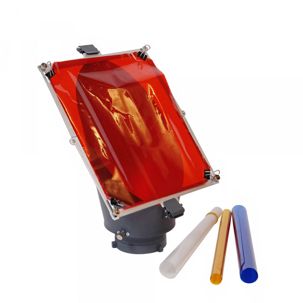 Насадка фоновая Falcon Eyes FEA-BRT BW4 Насадка фоновая Falcon Eyes FEA-BRT BW4 предназначена для подсветки фона и создания равномерного по плотности эллиптического светового пятна. Насадка устанавливается на осветительные приборы с байонетом Bowens — как на вспышки, так и на осветители постоянного света. Установленную на приборе насадку можно поворачивать на 360 градусов, выбранное положение фиксируется винтовым зажимом. Размер получаемого светового пятна при установке насадки на расстоянии 50 см от фона будет составлять около 200×120 см. Насадка Корпус насадки изготовлен из металла. Для установки сменных фильтров, на корпусе насадки предусмотрены две клипсы. Внутри насадки отражающее серебристое покрытие. Размер «среза» насадки составляет 31×20 см Светофильтры Для окрашивания светового пятна в комплекте предусмотрены складная металлическая рамка и четыре сменных фильтра (белый рассеивающий, красный, жёлтый и синий). Фильтры устанавливаются на рамку с помощью четырёх прищепок, находящихся по углам. Рамка с установленным фильтром фиксируется на корпусе насадки клипсами, находящимися на насадке. Размер фильтров — 31×25 см.