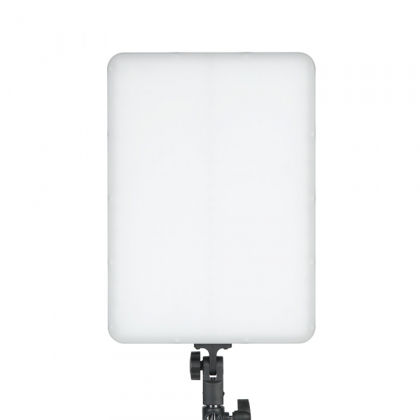Матовая панель, закрывающая излучающую поверхность, создает равномерный световой поток и однородное освещение без дополнительного рассеивающего фильтра. При этом мощности прибора достаточно, чтобы дополнить и, главное, скорректировать естественный свет или убрать с лиц ненужные тени, например при съемке на улице.