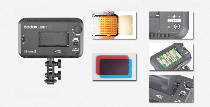 170 светодиодов создают яркое освещение. Регулируемый угол наклона осветителя. 3 модели разной мощности. В комплекте рассеивающий фильтр и оранжевый светофильтр. Шторки в комплекте помогают создать больше световых эффектов.