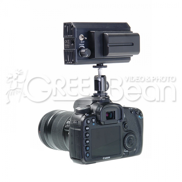 Осветитель светодиодный накамерный GreenBean LuxMan 128 LED Накамерный осветитель LuxMan 128 LED, благодаря широкоформатным пропорциям корпуса (124х70 мм), обеспечивает равномерное освещение при видеосъемке без падения яркости по краям кадра. В качестве источника света используются новые светодиоды с индексом цветопередачи CRI >90, которые позволяют передать точные цвета снимаемого объекта, а световой поток достигает 900 лм. Цветовая температура осветителей 5500 К (3200 К с фильтром). В комплекте аккумулятор 2100 мАч типа NP-F и сетевой адаптер. Аккумулятор обеспечивает 2-3 часа непрерывной работы, а для более продолжительных съемок осветитель можно подключить к сети 220 В с помощью адаптера (9 В 2,5 А). На задней панели устройства находится диммер, который позволяет плавно регулировать яркость в пределах 10-100%. Прочный алюминиевый корпус с порошковым покрытием защитит осветитель от ударов при транспортировке. Благодаря крепежному адаптеру с шаровым основанием, установленный на камере осветитель можно наклонить или повернуть в нужном направлении.
