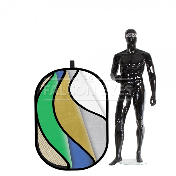 Отражатель RRK7-3648 - 7 цветов в наборе (золотисто-серебристые полосы, серебристый, просветный, белый, синий, золотистый, зеленый). В развернутом виде размер 92×122 см, в сложенном виде диаметр 43 см. |