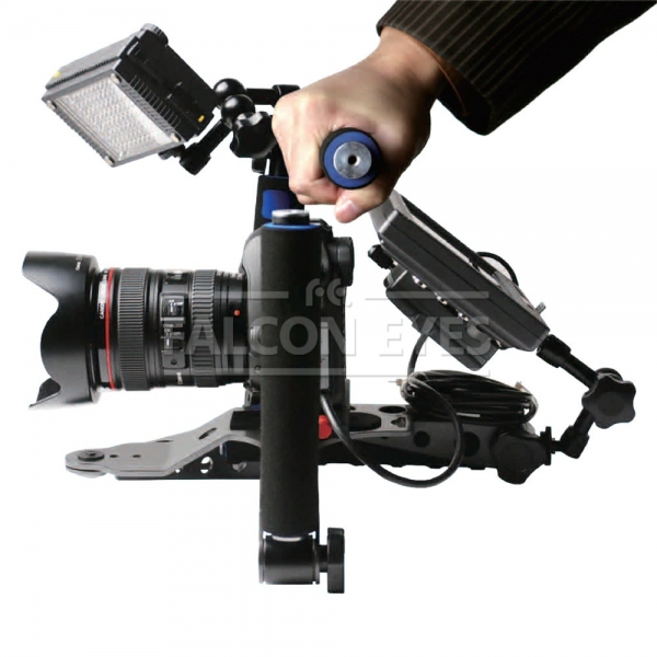 При использовании в качестве наплечного штатива max расстояние между ручками составляет 400 мм (регулируется), длина ручек 210 мм. Снизу и сверху в ручках имеются отверстия 1/4 дюйма для крепления дополнительных аксессуаров (осветителей, микрофона