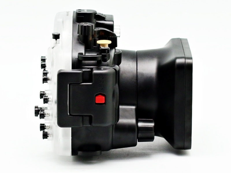 Meikon Panasonic LX-100 подводный бокс (аквабокс) для фотоаппаратов Panasonic Lumix DMC-LX-100 - выполнен из сверхпрочного поликарбоната с дополнительными ребрами жесткости повышающими крепкость бокса на глубинах до 40 метров. Внешнее покрытие пластика не скользит в руках. Бокс полностью поддерживает все функции фотокамеры, включая и работу с внешними подводными вспышками через два оптических порта, имеет датчик протекания. Удачная эргономика бокса позволит Вам легко управлять фотоаппаратом даже в подводных перчатках.