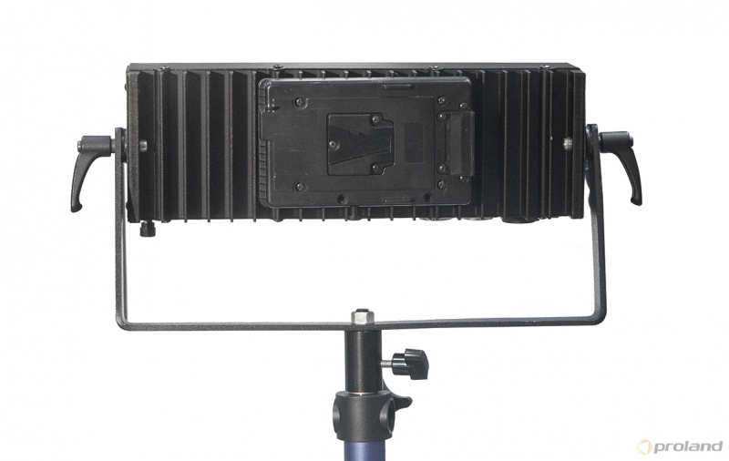 Светильник предназначен для фонового и заполняющего света на выезде и в студиях. Широкий световой пучок обеспечивает равномерное освещение фона на большой площади. Вынесенный наружу радиатор обеспечивает эффективное охлаждение и долговечность устройства. Встроенный DMX-блок позволяет управлять яркостью светильника как удаленно с пульта DMX, так и с помощью ручки управления, расположенной на осветительном приборе. При этом на цифровом табло отображается либо яркость (в процентах от максимальной), либо номер канала DMX. Низкое энергопотребление и мощный световой поток позволяет применять такие светильники даже при ограничении на потребление электроэнергии. Модель BL100-D LED / V оснащена площадкой питания от аккумуляторной батареи с креплением V-lock.