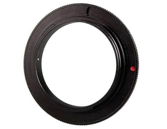 Реверсивный адаптер предназначен для макросъемки. Позволяет присоединить объектив к фотоаппарату в перевернутом положении. Адаптер накручивается на резьбу для светофильтра и устанавливается в фотоаппарат. Благодаря реверсивному адаптеру вы сможете снимать мелкие объекты с большим увеличением, пользуясь штатным объективом и не тратя много средств на дорогие макрообъективы. Можно использовать объективы сторонних производителей (диаметр под светофильтр на объективе должен совпадать с реверсивным переходником). Необходимо учитывать, что при работе с данным адаптером не будет работать автофокус и прыгающая диафрагма, значение диафрагмы не будет передаваться камере. Возможно ручное (в некоторых случаях полуавтоматическое) управление. Из-за снижения светосилы усложняется наводка на резкость.