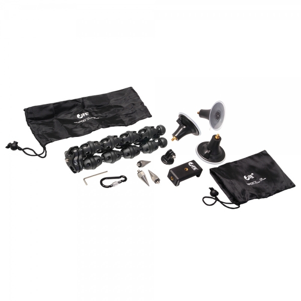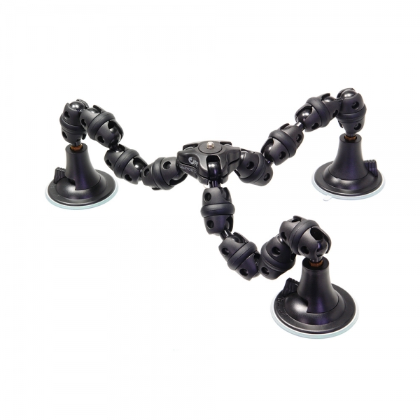 Отличительной особенностью штатива LifePOD Flex Plus является оригинальная конструкция ножек, они состоят из гибких шарнирных соединений, которые сгибаются в любом направлении под любым углом и надежно сохраняют свое положение. Благодаря резиновым кольцам, расположенным на каждом шарнире, и резиновым опорам штатив можно установить даже на деликатных поверхностях. Также в комплект поставки включены присоски и металлические шипы, которые устанавливаются вместо резиновых опор. Присоски позволят установить камеру на любую ровную и гладкую поверхность — окно, стол, стекло автомобиля, зеркало и т. д. Шипы обеспечат устойчивость на рыхлой земле или скользком льду.