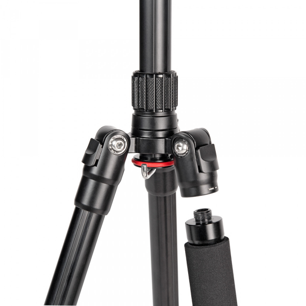 Одна из ног (с противоскользящей пенкой) штатива съемная, соединив её с центральной колонной и головкой можно получить монопод высотой от 77 до 151 см, который незаменим в репортажных съемках.
