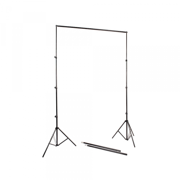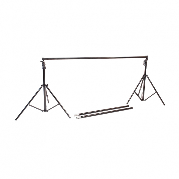 Горизонтальная перекладина — составная. Максимальная длина — 302 см. Состоит из четырёх алюминиевых секций-трубок (Ø 25 мм) с подпружиненными фиксаторами. При необходимости — можно использовать две крайние секции, тогда длина штанги будет составлять 151 см. Установка фона без кармана для крепления производится при помощи зажимов (в комплект не входят).