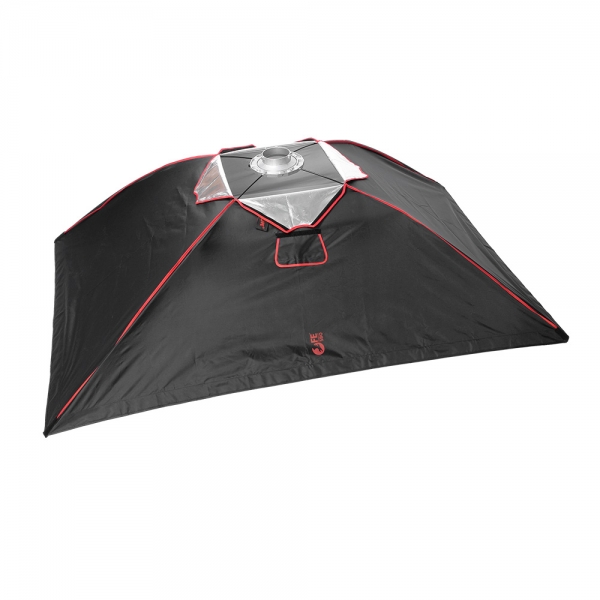 Закрытая конструкция позволяет избежать нежелательных бликов и потерь светового потока. Отражатель, с серебристой тканью внутри, обеспечивает равномерную засветку рассеивателя, который в свою очередь, благодаря большой поверхности, смягчает формируемые тени. Дополнительный внутренний диффузор улучшает равномерность светового потока. Наконечники на упругих металлических спицах не повреждают тканевые спицедержатели софтбокса и облегчают сборку конструкции.