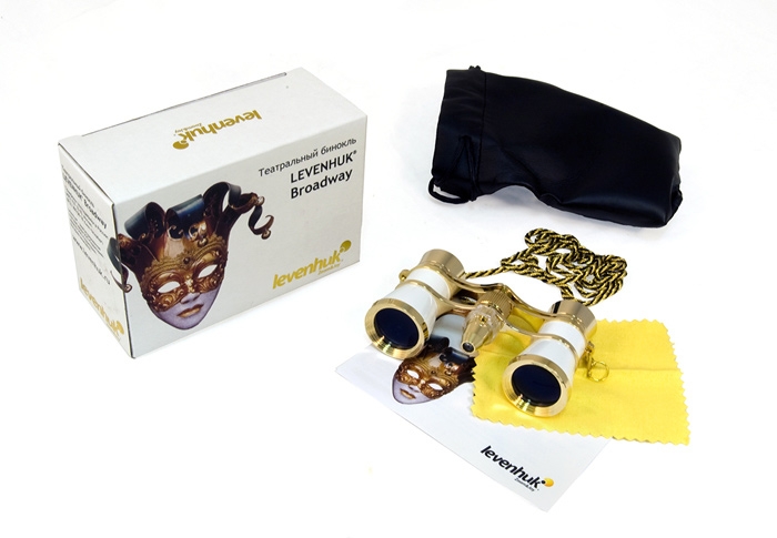 Если вы часто бываете в театре, на спектаклях вам просто необходим специальный театральный бинокль. Бинокль Levenhuk Broadway 325F ориентирован на использование в помещениях – небольшое увеличение в сочетании с большим полем зрения, а также небольшой ближний предел фокусировки позволят увидеть все происходящее на сцене из любой точки зрительного зала. Кроме того театральный бинокль Levenhuk Broadway 325F обладает роскошным внешним видом. Металлический корпус молочно-белого цвета с золочеными элементами выглядит изысканно и благородно. Витая черно-золотистая цепочка для ношения бинокля на шее дополняет этот образ. Бинокль выполнен с использованием высококачественной оптики. Линзы из оптического стекла с многослойным просветлением обеспечивают яркое и контрастное изображение. Механизм центральной фокусировки облегчает настройку резкости – изображение настраивается в обоих окулярах одновременно. Межзрачковое расстояние регулируется в широких пределах, что позволяет настроить бинокль в соответствии с индивидуальными особенностями каждого пользователя. Отдельно стоит отметить встроенную светодиодную подсветку – узкий луч света будет полезен в темном зрительном зале, при этом он не потревожит окружающих.
