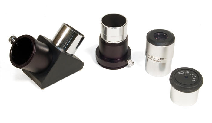 Линзовые поверхности телескопа имеют просветляющее покрытие, которое обеспечивает максимальное светопропускание, а отражающие – защитный слой, увеличивающий срок их службы. Очень компактная и легкая алюминиевая труба установлена на экваториальную монтировку, оснащенную ручками тонких движений и допускающую установку электропривода часовой оси. Такая монтировка имеет специальные координатные круги, с помощью которых, после несложной настройки, можно находить объекты по их экваториальным небесным координатам, а также сопровождать суточное движение объекта вращением только одной ручки. Тренога регулируется по высоте и имеет удобную полочку для принадлежностей. На выходной втулке имеется стандартная Т-резьба, которая, через дополнительное переходное кольцо, позволяет присоединять к телескопу зеркальную фотокамеру и производить съемку Луны и других ярких объектов.