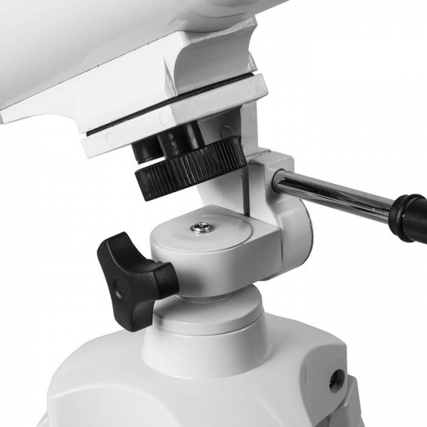 Телескоп Veber 700*70 AZ Белый - это линзовый телескоп (рефрактор), который дает четкое и контрастное изображение, хорошо подходит для путешествий. Просветленный ахроматический объектив диаметром 70мм, собирает в два раза больше света , чем 50мм и позволяет наблюдать не только небесные, но и очень удаленные земные объекты. Картинка резкая, без окрашенности изображения по краю поля зрения. В этот телескоп вы сможете увидеть детали на дисках планет, кратеры Луны размером 5-6 км, многие туманности и звездные скопления (вплоть до 12 m звездной величины). Для земных наблюдений мы рекомендуем использовать окуляр PL-20, с которым увеличение телескопа будет 35x, при этом ближняя точка фокусировки составит 12,5 м. Этот телескоп дает прямое (не перевернутое) изображение. Наличие в окулярном блоке оборачивающей призмы (а не диагонального зеркала, как в аналогичных моделях других фирм), делает изображение изображение не зеркальным (где левое и правое меняются местами), а таким, каким обычно вы видите его невооруженным глазом. Для удобства наблюдения (из положения стоя или сидя), окулярную часть вместе с призмой можно поворачивать, 8 фиксированных положений. С помощью искателя (входит в комплект, увеличение 6х, крепится к телескопу) можно быстро навестись на цель наблюдения. Телескоп снабжен азимутальной монтировкой AZ (металл) белого цвета. Такой монтировкой удобнее пользоваться если вы наблюдаете наземные объекты. Всего одна ручка позволяет управлять прибором и по вертикали и по горизонтали. Имеется фиксатор найденного положения. Телескоп поставляется с алюминиевым штативом с возможностью регулировки высоты. Распорки для ножек служат не только для повышения устойчивости, но и в качестве подставки под полочку для аксессуаров (идет в комплекте). Сумка для переноски, в которую укладывается весь комплект, позволяет безопасно (для оптики и внешнего вида) транспортировать прибор для выездов на природу или при походах в гости.