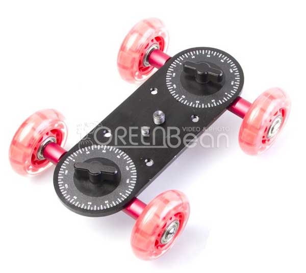 Тележка (скейтер) Dolly 1 предназначена для установки видеооборудования и получения плавного движение в кадре с изменением перспективы.Часто тележку Dolly 1 используют для предметной съемки, иногда ей можно заменить слайдер (если позволяет поверхность). Для работы с тележкой подходит любая ровная поверхность – стол (в т.ч. бильярдный), пол, длинная доска и т.д. Тележка Dolly 1 быстро разбирается и легко настраивается. Может двигаться прямо или по кругу. Точность выставления осей колес легко проверить по нанесенным шкалам. Штативная головка может устанавливаться прямо на базовой пластине (крепежные винты 3/8 дюйма и ¼ дюйма – выбираются подходящие). На пластине имеются четыре отверстия 1/4 дюйма для крепления «навесного оборудования».