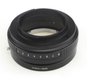 Tilt Адаптер Minolta MD/MC - Sony E NEXадаптер с наклоном оптической оси, предназначенный для установки объективов с креплением Minolta MD/MC на фотоаппараты системы Sony E NEX (кроме полнокадровых). Управление диафрагмой и фокусировкой происходит вручную, нет возможности использования автофокусировки, все настройки производятся на объективе. Переходник имеет 8 степеней наклона (от 0 до 8 градусов). Адаптер превращает любой обычный объектив в объектив с наклоном, который используется для коррекции глубины резкости и оптических искажений.