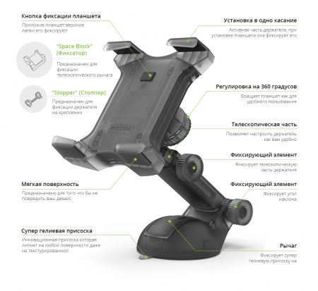Южнокорейская компания Onetto специализируется на производстве высококлассных автодержателей, главной особенностью которых является удобное крепление мобильного девайса в одно касание. Достойным представителем серии является Easy Smart Tab 2. Особенности: