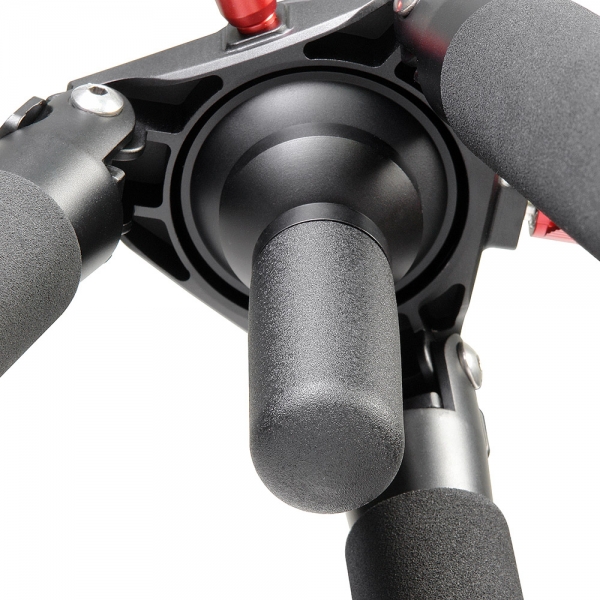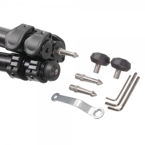 Мощное литое основание штатива и секции большого диаметра обеспечивают максимальную устойчивость на скручивание и быстрое затухание колебаний. Ноги штатива выполнены из прочного алюминиевого сплава, клипсовые замки QuickLock надежно соединяют секции. В комплекте поставляются съемные металлические шипы и резиновые пятки, эта позволяет легко заменять изношенные опоры, либо установить другие, подходящие для конкретной ситуации (совместимы опоры с винтом диаметром 10 мм).