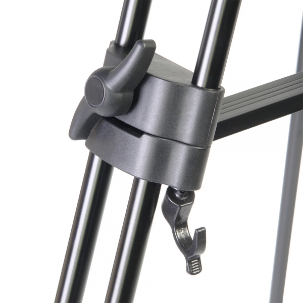 3-секционные сдвоенные телескопические алюминиевые ноги обеспечивают компактность и малый вес. Модернизированные зажимы надежно и быстро блокируют секции и придают штативу высокую устойчивость. Диаметр трубок секций штатива: 14/17,5 мм. Для усиления штатива используется верхняя растяжка, благодаря этому штатив можно использовать на неровных поверхностях (камнях, ступенях лестницы и т.д.). На концах штативных ног размещены резиновые опоры препятствующие скольжению. Для дополнительной устойчивости в ветреную погоду в одной из ног штатива находится подпружиненный трос с крюком для установки груза противовеса.