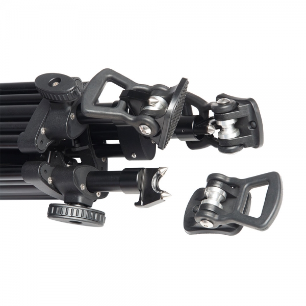 На концах штативных ног размещены алюминиевые парные шипы, на которые надеваются резиновые "башмаки". Комбинированные опоры позволят выбрать необходимый тип опоры для различных условий съемки. Шипы используются вне помещений, например для устойчивости на грунте или на льду, а резиновые опоры обеспечивают отличное сцепление на скользких и гладких поверхностях для защиты поверхности пола от царапин и повреждений.