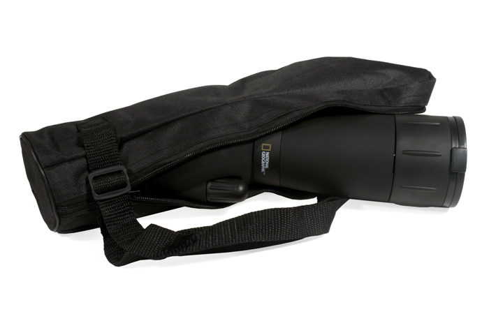 Зрительная труба оборудована колесиками фокусировки и изменения кратности, а также удобным резиновым наглазником. Встроенная выдвижная бленда поможет защитить оптику от росы и ярких солнечных лучей. В комплект также входит защитная крышка объектива и мягкая сумка для транспортировки.