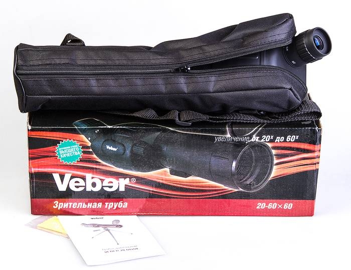 Труба зрительная Veber 20-60x60 предназначена для наблюдения за объектами природы, городскими пейзажами, а также подходит для наблюдения за мишенями при стрельбе из оружия в тире. Зрительная труба оснащена великолепной оптикой, обеспечивающей увеличение от 20 до 60 крат (трансфокатор в окуляре). Труба имеет прочный пылевлагонепроницаемый обрезиненный корпус, снабженный выдвижной блендой и дополнен откидной крышкой объектива, которую невозможно потерять. Корпус снабжен поворотным кольцом для установки трубы в наиболее удобное для наблюдения положение. Для переноски зрительной трубы предусмотрен прочный чехол с поясной петлей и наплечным ремнем. Установка на штатив - резьба 1/4".